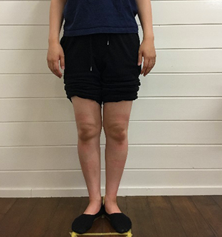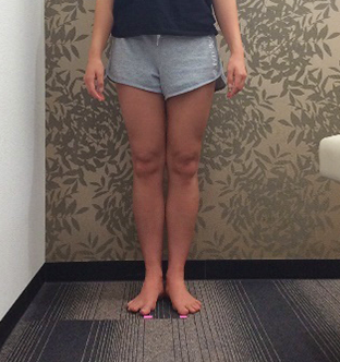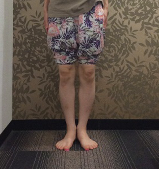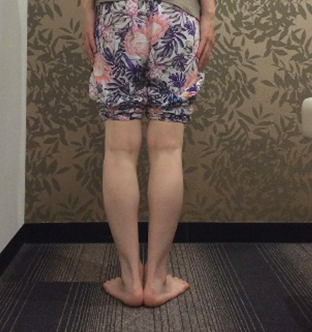 大腿XO脚は典型的なO脚に似ていますが、太ももの隙間が小さく、ふくらはぎの隙間がどちらかという気になるという状態です。